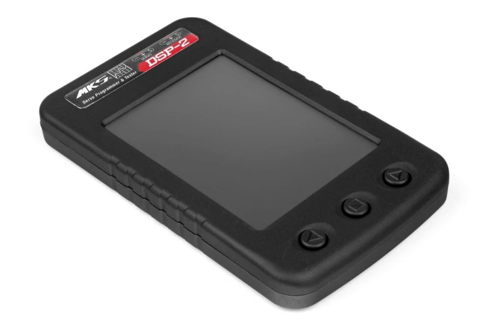 Autonomní programátor/tester serv MKS s rozšířenými možnostmi programování. Díky dotykovému displeji máte k dispozici nástroj pro programování a testování s komfortní obsluhou použitelný kdykoliv a kdekoliv. Servo je při programování napájeno z přijímačového akumulátoru připojeného k programátoru (5,1-15 V dle typu serva a jeho provozního napětí). Všechny parametry se nejprve nastaví na displeji DSP-2 a následně nahrají do vašeho serva. Programátor také může pracovat jako servotester s volitelnou opakovací frekvencí použitelný pro všechna serva - analogová i digitální, s neutrálem 1,5 ms i úzkopásmová 760 µs. Může také měřit šířku pulsů řídícího signálu pro klasická serva (PWM) na kanálových výstupech přijímačů.